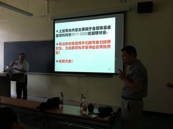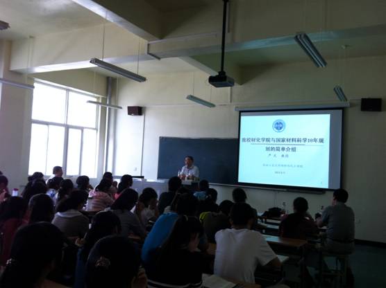 硕士研究生等学位授予问题;21世纪材料科学与工程前景以及材料在人类发展史中的作用等。期间,严老师睿智风趣的语言赢得了同学们的阵阵掌声。