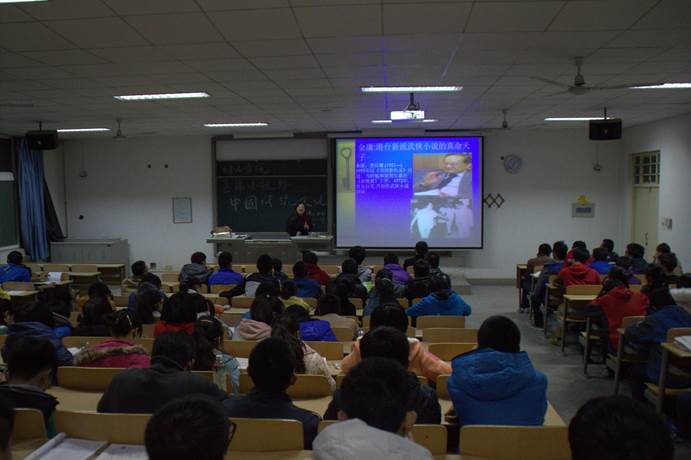 王老师首先为同学们介绍了著名作家金庸的基本资料和人物生平。通过对金庸武侠小说的介绍进而引出中国古代的侠文化。“侠”文化在中国有很深的渊源,最早可追溯到西汉,司马迁在《史记》中对“侠”有了最早的描述。王老师用自己独到的见解和精辟的语言为大家深刻阐释了金庸小说中的侠文化与我国传统文化之间密不可分的联系,并用小说中大量的事例来论证。同学们在听完讲座后获益颇多。