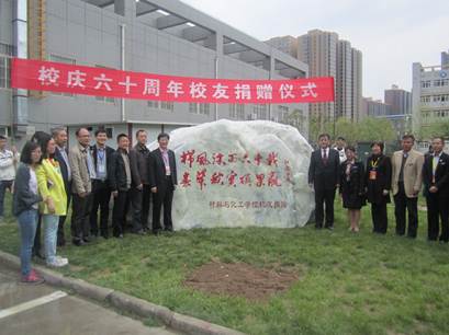 捐赠仪式首先由校长苗润才致辞,一方面表达了对校友们捐赠校友石的感谢,另一方面也向校友将学校这些年来所取得的长足进步进行了汇报,并对今后的工作进行了展望。随后,校友代表发言回忆在母校时光,同时对学校近年来所取得的巨大进步表示高兴。最后,校友对母校送上了自己的祝福:希望母校在今后的工作中再接再厉,更上一层楼,取得更多成果的同时也为国家培养更多的高素质人才。此次捐赠的校友石是由刘江南教授亲笔题词,由材化学院校友薛飞,赵玉彬等校友集体捐赠。校友石代表了我校朴实,敦厚的工作作风。