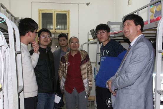 在走访调研过程中,学院党委书记路金龙、党委副书记张治宏和各位辅导员深入了解了学生在寒假期间的生活状况,及其所感所悟。路书记询问了大家新学期的打算,并深情的告诉同学们,如果在学习生活中遇到了难题一定要向学院反映,学院会尽心尽力帮助大家顺利完成学业。张副书记提醒同学们在宿舍要注意用电安全,勤打扫卫生,舍友之间相互体谅,相互帮助,营造良好的学习生活环境。