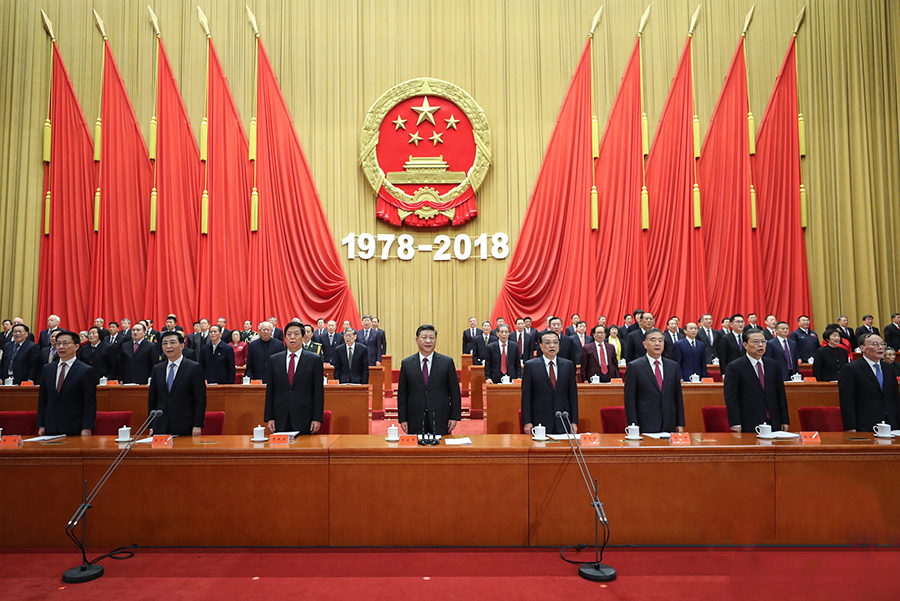 李克强在主持大会时说,习近平总书记的重要讲话,深刻总结了改革开放40年来党和国家事业取得的伟大成就和宝贵经验,高度赞扬了中国人民为改革开放事业作出的杰出贡献,郑重宣示了改革开放只有进行时没有完成时、改革开放永远在路上、坚定不移将改革进行到底的信心和决心,明确提出了坚定不移全面深化改革、扩大对外开放、不断把新时代改革开放继续推向前进的目标要求。让我们更加紧密地团结在以习近平同志为核心的党中央周围,高举中国特色社会主义伟大旗帜,不忘初心、牢记使命,持续深入推进改革开放,为实现“两个一百年”奋斗目标、建成富强民主文明和谐美丽的社会主义现代化强国、实现中华民族伟大复兴的中国梦,为维护世界和平、促进共同发展、推动构建人类命运共同体而不懈奋斗。
