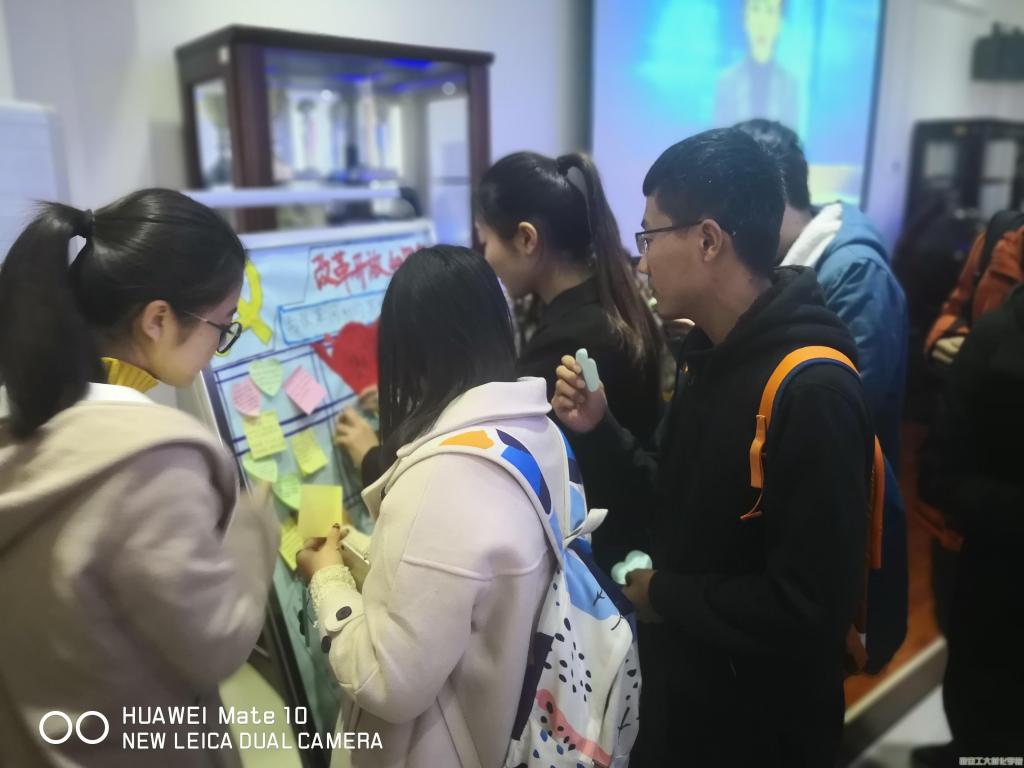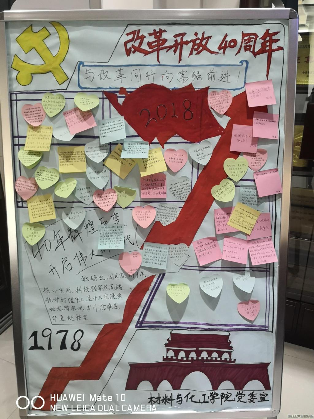 材化学院学生党员将自己对祖国的祝福和自己的责任担当张贴在展板上。学生党员张王超说:改革开放40周年取得这么大的成就,主要是由一大批敢闯敢干,艰苦奋斗,经历无数次困难的各行各业的崛起者,带领人民,凝聚力量,全民奋斗取得的如此大成就。我们应该珍惜现在的“美好生活”,同时坚守这些奋斗成果,继续发扬改革开放精神,为我们共同美好生活继续努力奋斗。
