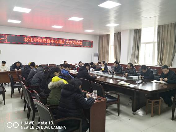 召开党委中心组扩大学习会议,会议由党委书记路金龙主持,学院党政领导、党委委员、工会主席、办公室主任、各教研室主任、各党支部书记在工3-410召开党委中心组扩大学习会议。