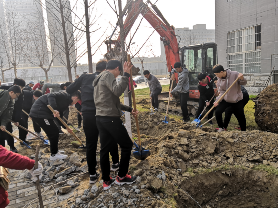 青年志愿者协会于2019年3月9日8时30分在工科一楼东侧举办“播种绿树,播撒希望”植树活动,我校后勤集团李斌老师及2018级志愿者队伍参与此次活动。