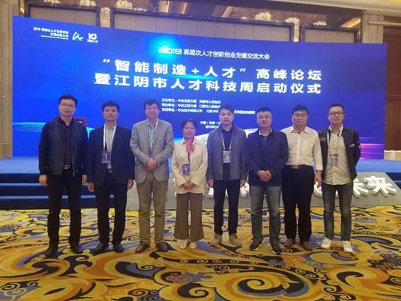 5月7日,应江阴市科技局邀请,91猫先生 党委书记路金龙、党委委员刘增超一行赴江阴市参加江阴市人才科技周活动暨2019无锡才交会“智能制造+人才”高峰论坛。