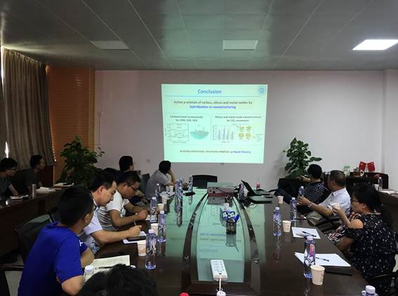 蒋青教授主要从事纳米材料/动力学研究,他用风趣幽默的语言向大家介绍电动汽车动力电池面对的机遇与挑战。赵纪军教授报告主题是“新奇二维功能材料的计算设计”,他在报告中介绍了几类代表性体系的研究进展,比如具有优异压电特性的第四主族单硫化Janus单层结构。他们指出学术交流不仅能吸取国内外最新研究成果,也是提高教学科研水平和人才培养质量的重要手段。对于营造浓厚的学术氛围,提高研究生培养质量,打造一流导师队伍,构建一流学科、凝聚一流研究成果具有重要意义。