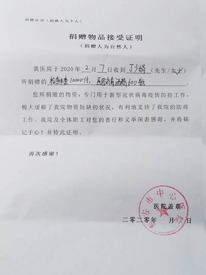学院师生党员积极参与捐赠献爱心,助力疫情防控。马爱洁利用个人实验室资源制备消毒试剂,收集口罩、手套、防毒面具等,捐助给有需求的小企业以及周围需要帮助的人。身在海外教师党员许军锋心系祖国,向周围同事同学宣传防护措施,减少华人恐慌,传递正能量。校民盟成员要玉宏向武汉慈善总会捐款1000元。学生党员贝胜男积极动员家人向泰安医院捐赠护目镜、医用帽子、医用手套、乳胶手套、隔离面罩、医用酒精、消毒液等价值7万余元的抗疫物资,贾哲、郭心怡、张欣怡、李姝姝、杨静、等同志通过武汉慈善总会等网络平台捐款支援武汉,张恒华及其家人累计向附近的邻居村民免费赠送口罩50余个。学院近15名学生党员投身所在村、社区的消毒、疫情知识宣传、排查等情防控工作中,并通过国务院疫情防控线索征集系统等渠道就疫情防控存在的问题进行举报。