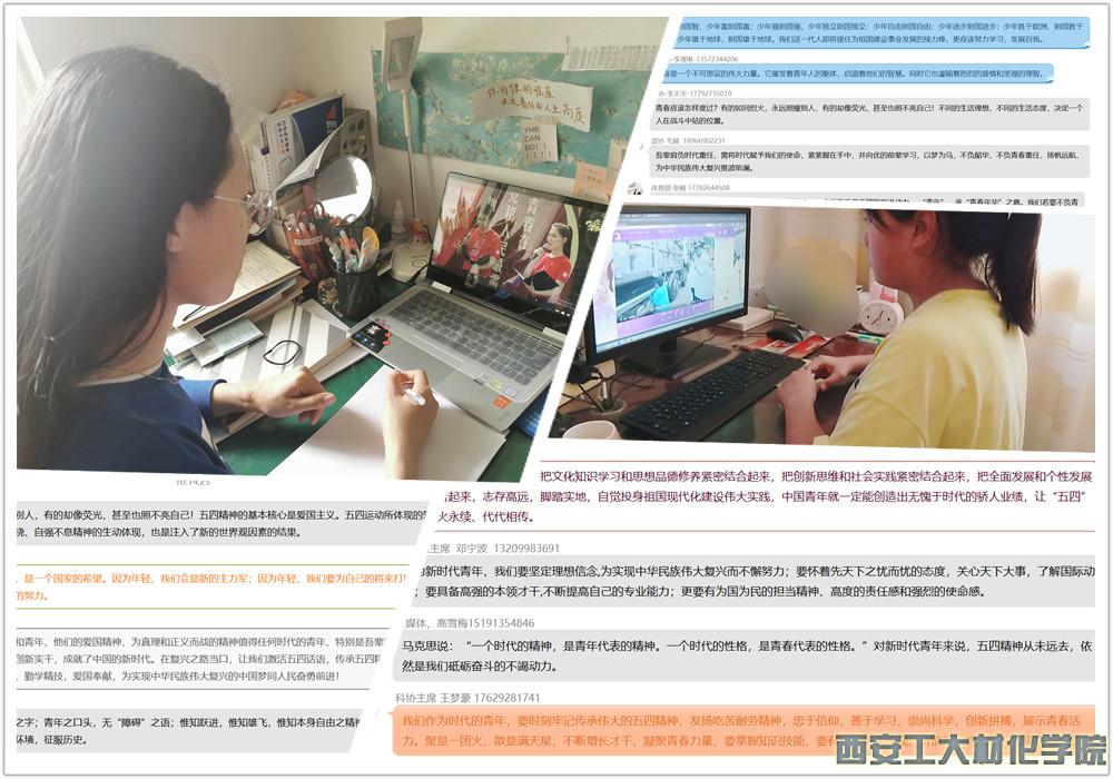 此次活动围绕“出彩青春”、“战‘疫’青春”、“奋斗青春”、“绽放青春”四个篇章,精心推出第24届“中国青年五四奖章”风采录、青春故事分享会、青春思“享”课五四专辑、各地团日活动和优秀文化产品精彩展示等活动,将带领广大青年走近历史的厚重,了解各领域青年团员的青春风采。观看直播中,17级赵欣同学说到少年强,则国强。作为共青团团员的当代大学生要不负韶华,砥砺前行,做好新时代的接班人,以奋斗之姿迎接未来锦程春光,四月春风似青年,裁出新篇章,共创新荣耀!18级张楠同学表示青年,是祖国的未来、民族的希望,是一个国家、一个民族无坚不摧的前进动力,广大青年要不负青春,要用自己的青春热血披荆斩棘,用行动谱写出奋力拼搏建设新青海的时代旋律。19级延涵冰同学认为当代青年要传承发扬五四精神,做到志存高远、德才并重、情理兼修、勇于担当、奋力开拓,在火热的青春中放飞人生梦想,在拼搏的青春中成就事业华章!