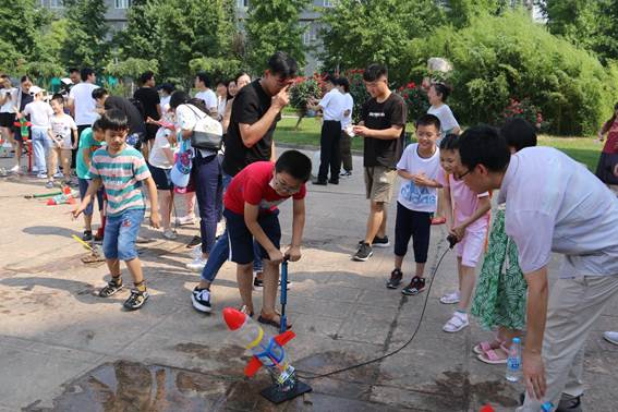习近平总书记高度关注着青少年的健康成长,强调要在全社会推动形成讲科学、爱科学、学科学、用科学的良好氛围,并多次强调科技创新的重要性。激发和培养西安工大附小学生动手能力和科学精神,2020年7月8日,材化学院依托陕西省“兵器小镇”科普中心开展“大手拉小手,点亮科学梦”水火箭实验活动,西安工业附小学生及家长共计90余人参与。活动由陕西省“兵器小镇”科普中心、91猫先生