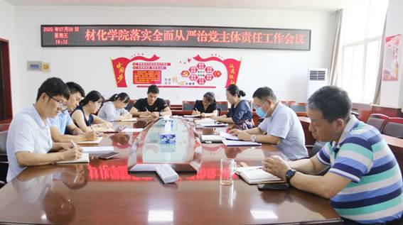 2020年7月29日下午,材化学院党委组织召开落实全面从严治党主体责任专题会议,部署安排以案促改工作。学院党政领导、党委委员、学生党支部书记及学院办公室主任参加会议,学院党委书记惠增哲主持会议。