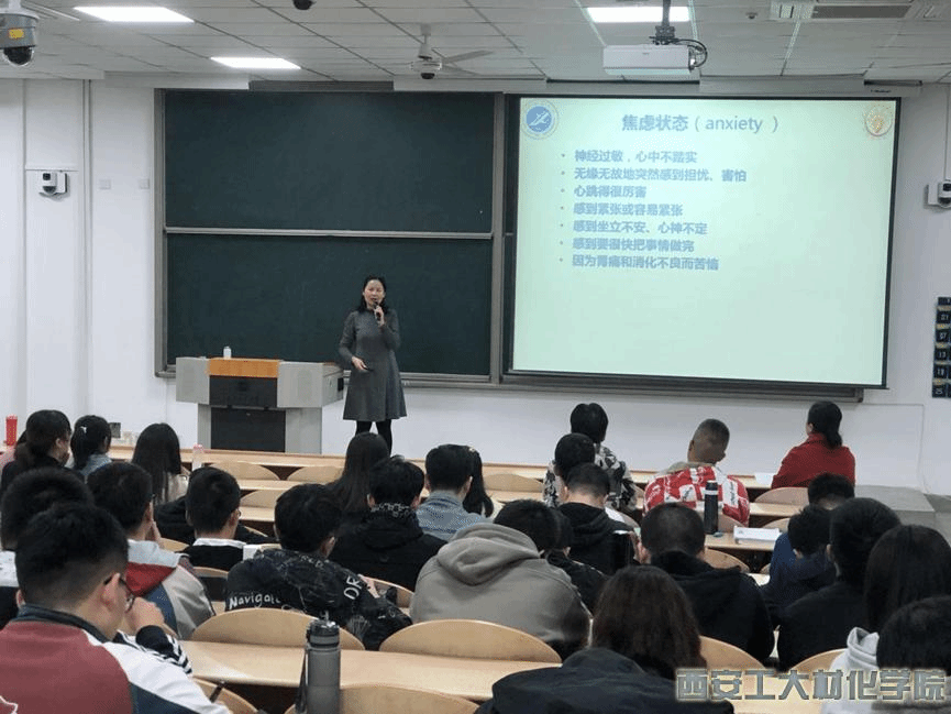肖琼教授现任西安石油大学学生心理成长指导中心主任,硕士研究生导师,国家二级心理咨询师,中国心理学会注册心理师,主要致力于心理咨询与心理健康教育工作与研究。讲座伊始,肖琼教授通过心理体验,使现场学生放松心情,打开心扉。随后,肖琼教授就考研心态问题进行详细的讲解,她强调,考研学生一定要科学确定目标,逐步树立新的自我,保持正常的心态,稳定的情绪,走出认知局限。接着,肖琼教授从考研学生的压力源分析、影响考研心理的因素、如何应对压力以及情绪管理等方面进行剖析和阐述;最后,她向大家教授了缓解考研焦虑情绪的具体方法。