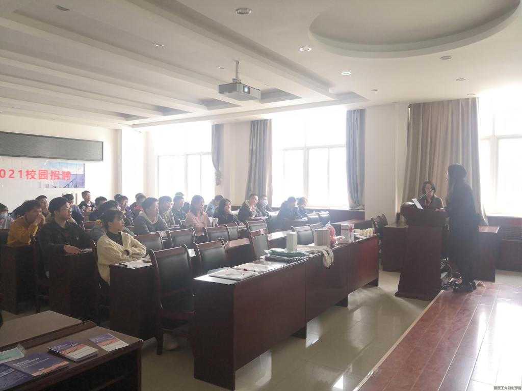 会前,人事部叶女士播放企业宣传片,从环保、能源问题引入光伏发电行业发展和未来发展趋势。随后从隆基股份、隆基乐叶、陕西隆基乐叶三个层面介绍企业,简单介绍了企业发展历程和光伏产业链发展,让同学们了解到企业文件的研发成绩。叶女士通过图片展示员工工作环境、工作状态、社团活动以及饮食娱乐环境,介绍了薪酬标准、福利机制以及校招培训生培养方案增加了学生对企业的认识。质量部负责人从体系的角度讲质量,以“西红柿炒鸡蛋”为例讲述质量部工作内容,主要负责原材料、过程以及成品质量,并从电池工艺各环节补充相关专业工作内容,随后设备部负责人谈到设备部主要负责企业设备的日常保养、维修工作。最后,企业负责人耐心细致的回答了同学们的疑问,通过现场投递简历、面试的形式,与学生签订三方协议。