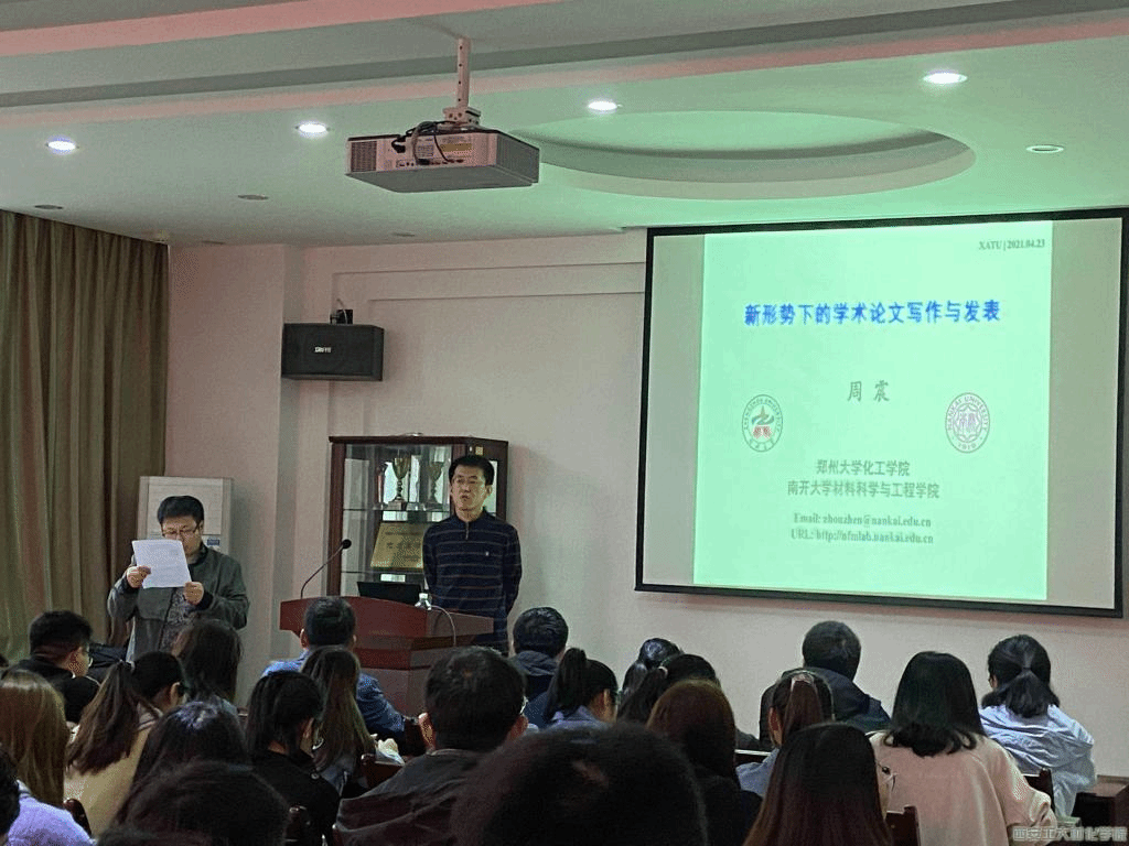 会议由材化学院何朝政副教授主持,周教授从论文写作、编辑审稿的角度出发,介绍学术论文写作的词汇与语法要求,深入剖析学术论文各部分内容的写作特点,阐明新形势下论文投稿期刊的选择、审稿、修改及发表前后各流程注意事项,讨论优秀学术论文的构成要素以及如何实现从publish到publicize的目标。