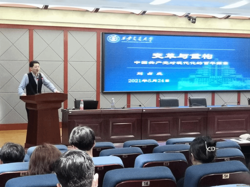 5月24日,西安交通大学马克思主义学院博士生导师刘占虎应邀为材化师生做题为《中国共产党对现代化的百年探索》的党史学习专题报告。报告会由学院党委副书记张艳霞主持。
