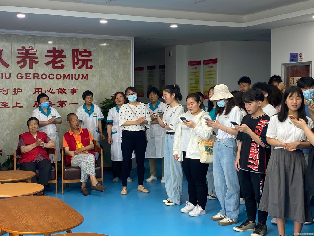 迎着朝阳,同学们脸上洋溢着出行的喜悦,一路欢乐高歌,向着目的地前行。顺利抵达养老院后,负责人先向敬老院的工作人员了解了有关情况,同学们则拿起清洁工具主动帮助清理室内卫生,为敬老院的干净整洁,尽自己最大的努力。随后,同学们又拜访了住在敬老院里的老人,询问他们的身体状况以及生活质量。然后,同学们一起为老人们演唱《小苹果》、《打靶归来》等歌曲。随后,一位老人独唱《说句心里话》、《小白杨》等歌曲,用歌声展现出了老一辈的风采。老一辈,是最温柔、最朴实的人,也是我们最应陪伴的人。同学们真挚的关怀,亲切的交谈,为平日清静的敬老院带来了许多欢笑声,整个敬老院洋溢着幸福、祥和的气氛。最后,养老院的院长为我们讲述了养老院的现状,同时也希望社会能给予老人们更多的关注。