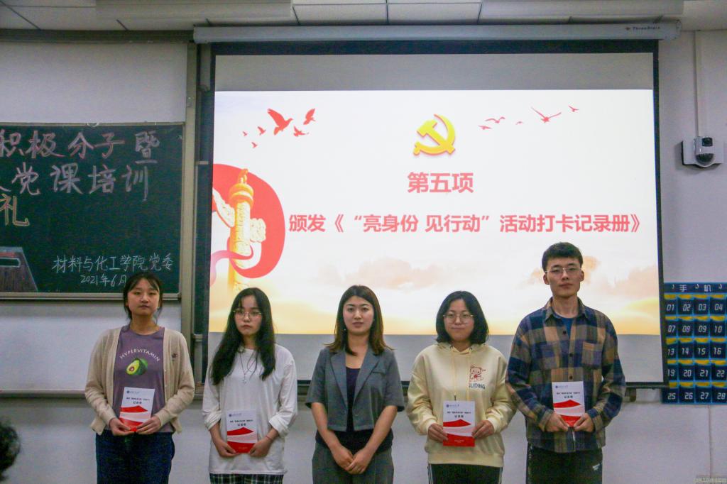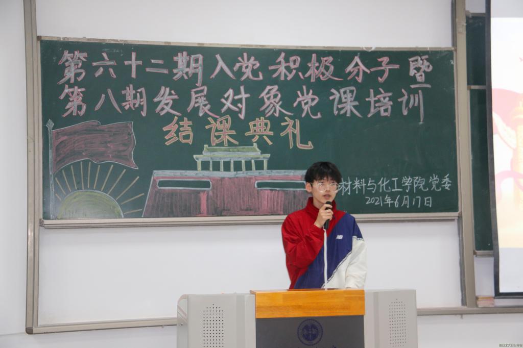 第62期入党积极分子培训班优秀学员的决定》;辅导员张瑞红为本期入党积极分子培训班优秀学员颁发荣誉证书。其次,辅导员徐慧子为入党积极分子、发展对象和党员代表颁发《“亮身份 见行动”活动打卡记录册》。随后,由第62期入党积极分子代表余光浩、王柯柯、刘文杰和雷宁作党课培训成果汇报;梁世博宣讲党史故事;优秀学员代表孙露交流发言。