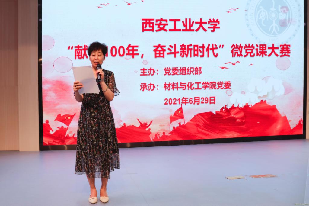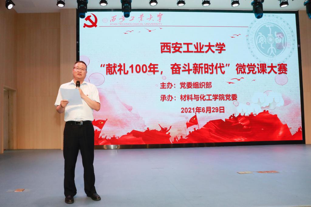 在建党100周年之际,为扎实推动“三会一课”常态化、规范化,深入开展党史学习教育,激励全体党员不忘初心、牢记使命,6月29日下午,西安工业大学“献礼100年,奋斗新时代”微党课决赛在双创楼报告厅举行。校党委副书记、党委组织部部长王军周出席活动。大赛由辅导员安春雨主持。