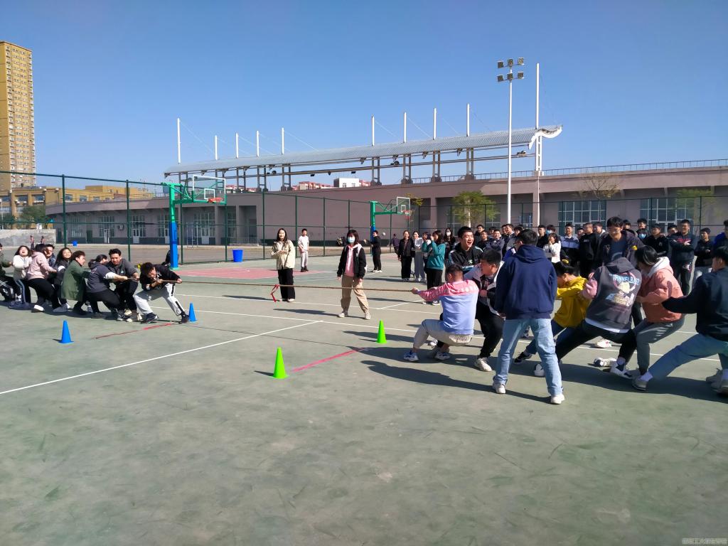 在为期两天的比赛期间,田径场上热闹非凡,加油声、呐喊声此起彼伏,队伍之间相互鼓励,相互配合,选手们充分利用道具,想方设法得分,你追我赶。其中“旱地接龙”比赛,格外考验参赛选手们的个人身体素质和团队协作能力。十人组成队伍,共同手持把手,跨龙前进,以最快的速度通过终点。其他比赛中参赛队员对于项目的人员分配格外严谨,在体力、协调力、灵活力等方面进行合理的分工参赛,团队协作的精神体现的淋漓尽致。同心击鼓、绕杆接力、毽子飞舞三个项目充分考验选手的控制力,在同心击鼓项目中,队员们认真练习并掌握技巧,学习其他队伍经验,比赛中全队一体屏住呼吸,伴随求的起落起伏,努力将球控制在鼓中央。“加油!加油!”此起彼伏呐喊声响彻最为紧张的拔河比赛,参赛队员们摆好姿势,交错而战,脚顶着脚,身子向后倾,双手抓住大麻绳,比赛开始后,个个队员面颊通红、汗珠滚滚,每个人把自己的全部力气用在大绳上,同时每个人的心紧紧系在一起,为自己的团队顽强拼搏,赛场上洒下全队努力的滴滴汗水,但挡不住的是青春活力。最终在历时两天的激烈角逐后,共有8支队伍从五项中中脱颖而出获得名次,摘得本次心理趣味运动会桂冠的是青年大学习队,荣获亚军的是卓越进取队,位居季军的七七八八队,而获得“最佳班风奖”的是勇闯天涯队。材化学院首届心理趣味运动会在大家的欢笑中圆满划上句号。