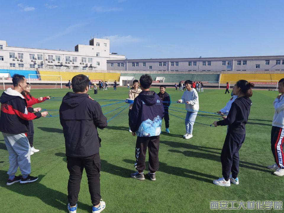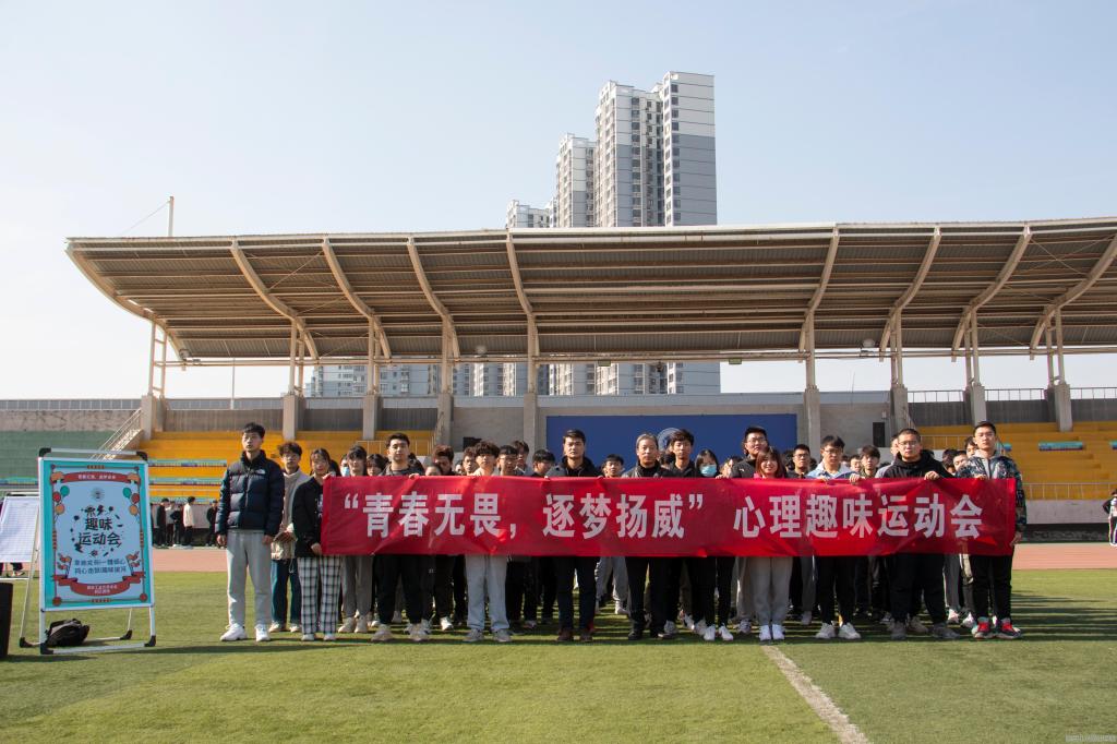 于田径场举办“呵护心灵 携手同行”首届心理趣味运动会,学院党委副书记陈卫星、辅导员段强、乔娜、徐慧子以及不同年级组建的15支代表队参加比赛。