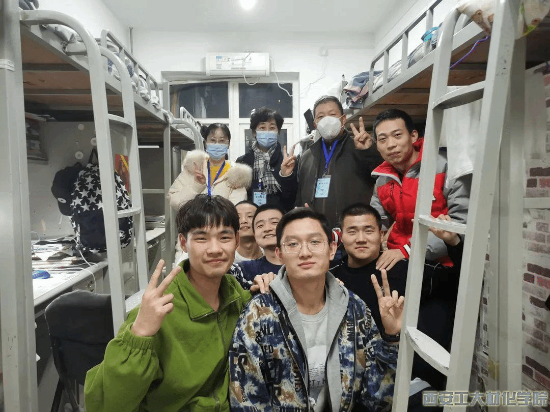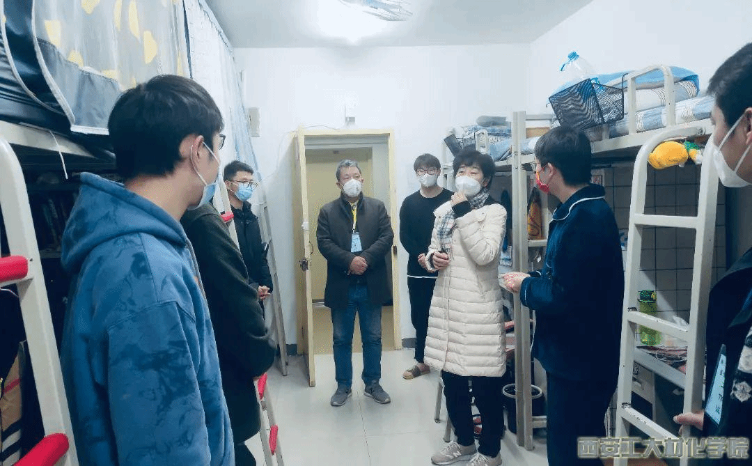 党委书记呼晓青、副书记陈卫星和五名本科辅导员、一名研究生干事立即回家收拾好行李,入住学院办公室和学生宿舍。八位老师驻扎学校后,逐一走访了学院所有学生宿舍,与学生谈心谈话,深入了解学生思想动态,密切关注学生身心健康状况,耐心解答疫情防控政策、期末考试、学校物资保障等问题,对学生遇到的实际困难给予及时帮助;并于考研、新年和新学期前夕深入走访学生宿舍,为学生送去暖心关怀和新年礼物。