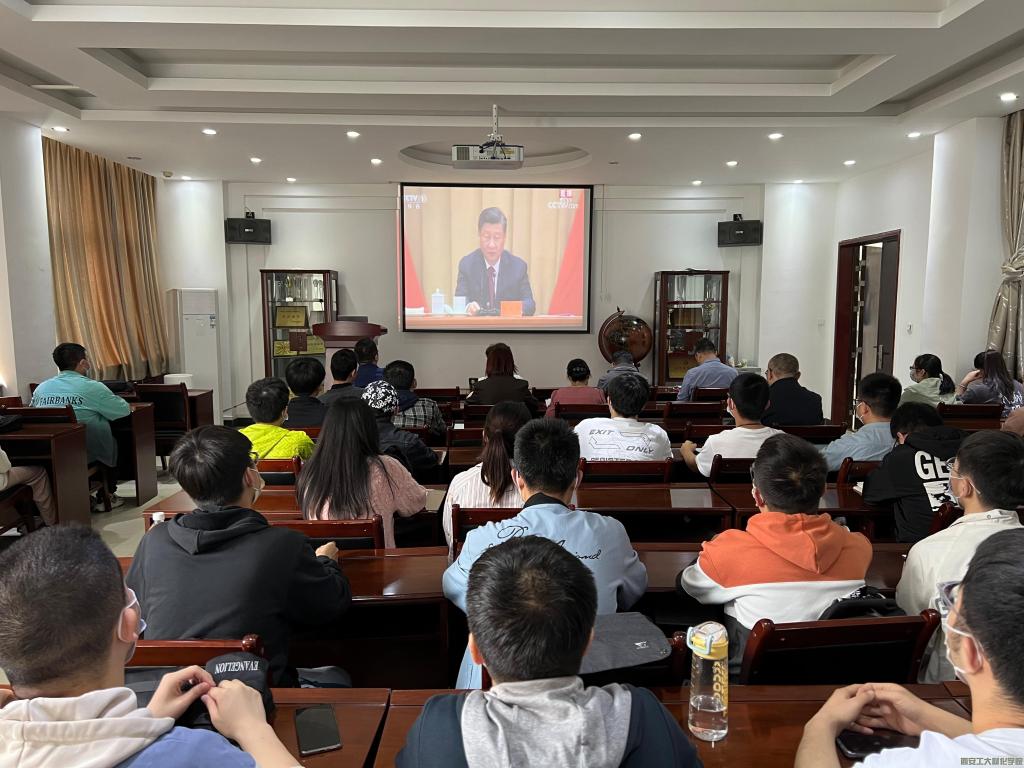 通过不同媒体平台组织全院团员直播观看庆祝中国共青团成立100周年大会。材化学院党委书记呼晓青、副书记陈卫星及学院党支部书记、团员代表等在工3-404会议室集中观看庆祝中国共产主义青年团成立100周年大会直播。