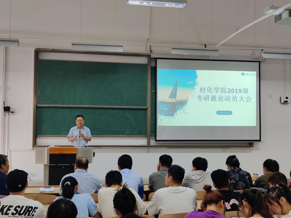 本次考研就业动员大会,旨在帮助2023届本科毕业生厘清考研和就业形势,是学院提高学生考研积极性,促进毕业生高质量就业的重要举措。下一阶段,材化学院将继续狠抓学风建设,对2023届本科毕业生,以考研、就业指导为抓手,以考研复习带动学风建设,努力使学院考研、就业工作再创佳绩。