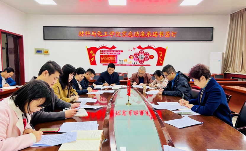 为深入开展廉洁文化建设,进一步教育引导学院党员干部弘扬廉政文化、筑牢“不想腐”的思想堤坝、永葆清廉本色,材料与化工学院于11月18日在工3-410开展家庭助廉倡议活动。学院领导班子纪委委员、全体科级干部、党支部书记参加了活动。