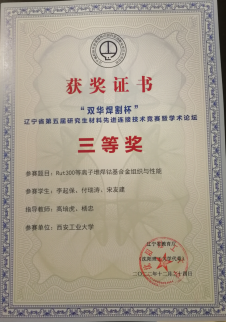 四支参赛队伍全部获奖。其中由杨忠、高培虎指导,研究生李起保、付瑞涛、宋友建共同完成的作品《Rut300等离子堆焊钴基合金组织与性能》荣获三等奖,陈白阳、赵大明、张波共同完成的作品《蠕墨铸铁等离子堆焊铁基合金组织与性能》荣获优秀奖,党国栋、金灿、范虎共同完成的作品《TC4钛合金表面激光熔覆锡青铜组织性能》荣获优秀奖,刘杰、吴汉婷、孙晨共同完成的作品《Q345等离子焊接工艺对接头组织性能的影响》荣获优秀奖,91猫先生