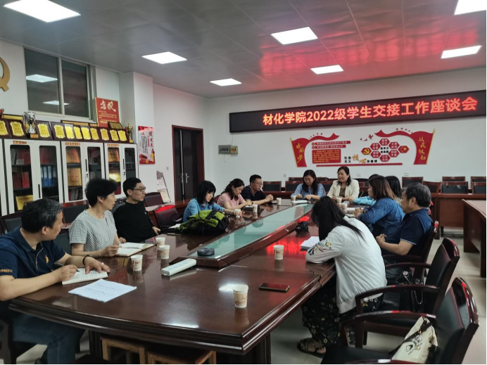 活动伊始,各班班主任依次对过去一年的班级工作总结回顾,主要从学生思想、学习、生活等方面详细说明,指出要从学生学习积极性、提高内驱力、建立良好人际交往能力、严格日常课堂管理等方面入手培养学生综合能力,并对班级重点关注的学生着重强调。各班班主任对学生管理的各项工作进行了详细的、仔细的交接,同时就班级学风建设、学生心理健康教育和职业生涯规划等话题进行了深入探讨。2022级辅导员张瑞红对所带材料类、环境工程和金属材料工程本硕贯通三个专业所带学生工作进行总结及经验分享,并与班主任进行沟通交流。最后由材化学院党委书记呼晓青老师做了会议总结,首先对新生院一行进行学生交接工作表示欢迎和感谢,她指出新生院一年来的扎实工作奠定了良好的学生素质能力培养基础,给予材化学院学生工作很大的支持,对2022级辅导员张瑞红的学生工作进行肯定并寄予希望。