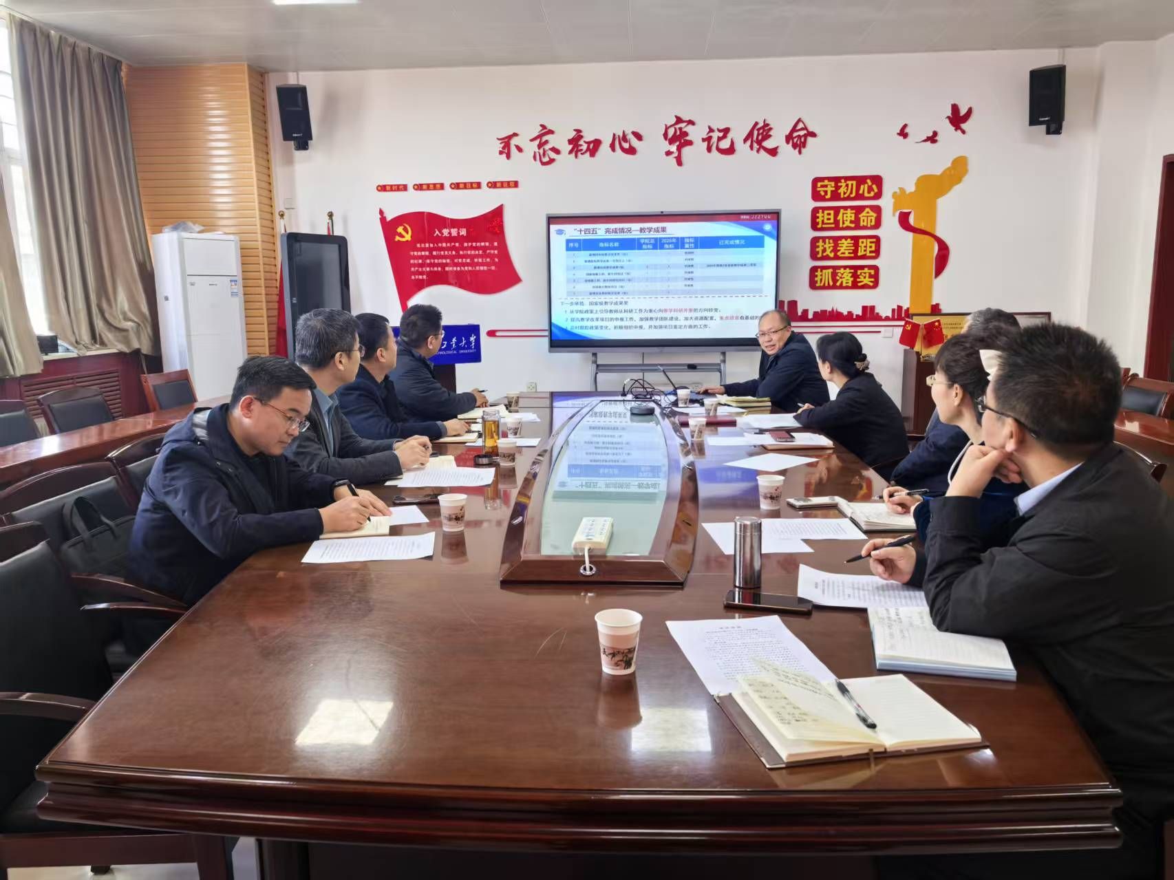 会议伊始由杨忠汇报“十四五”以来,学院发展的总体情况;“十四五”规划核心指标的完成情况,存在的问题及原因;以及“十五五”规划的发展目标和工作举措。陈卫星、王萍、杨巍和梁艳峰依次从专业招生、学科建设、科研团队、设施设备、学生就业等方面提出目前学院工作中遇到的实际问题。
