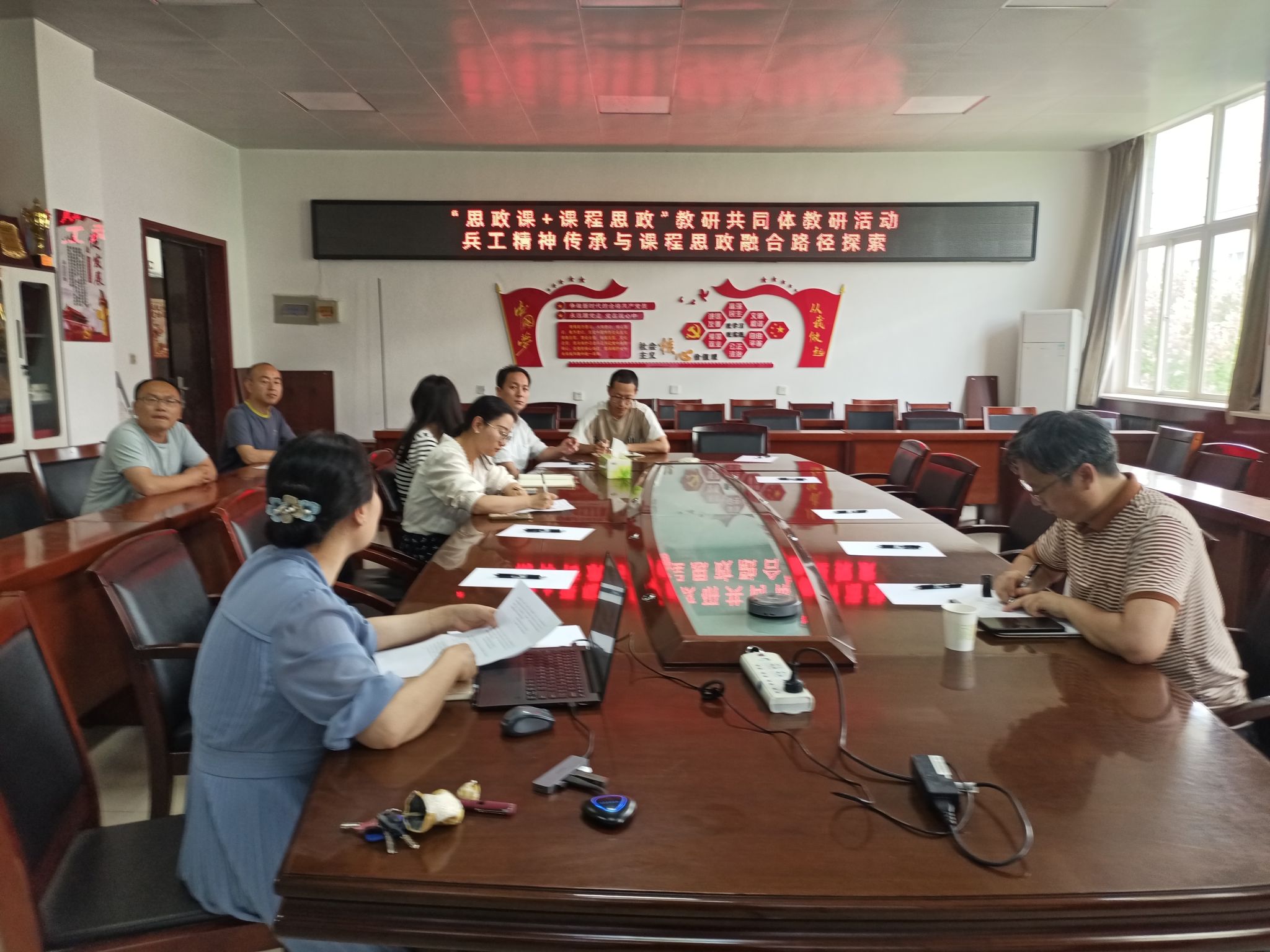 材化学院与马克思主义学院联合举办的“思政课+课程思政”教研共同体第一次教研活动在学院会议室举行。活动由金属材料工程专业教师梁艳峰主持,马克思主义学院王星老师及材化学院青年教师参与研讨,双方围绕“兵工精神传承与课程思政融合路径探索”主题展开深入交流。