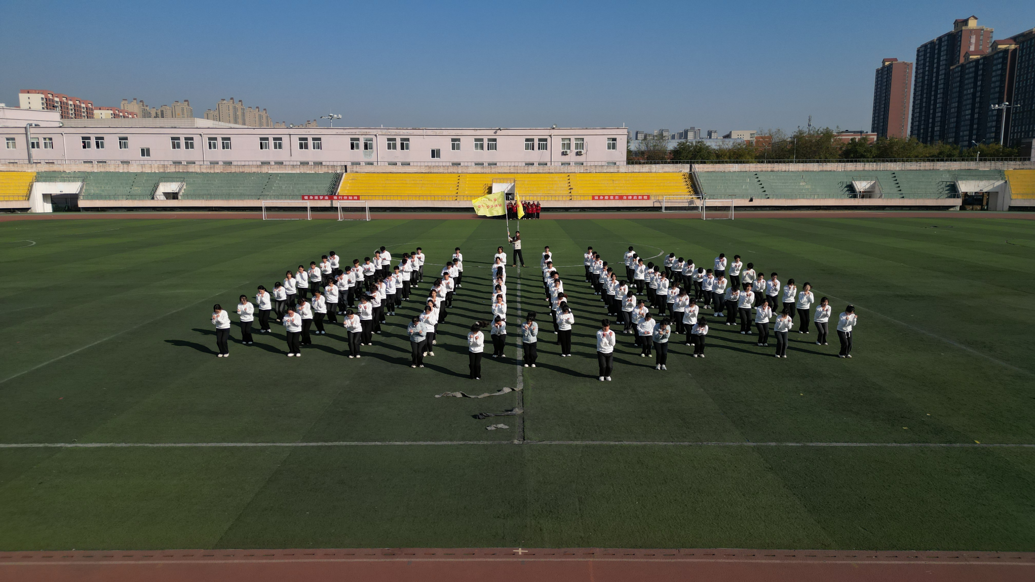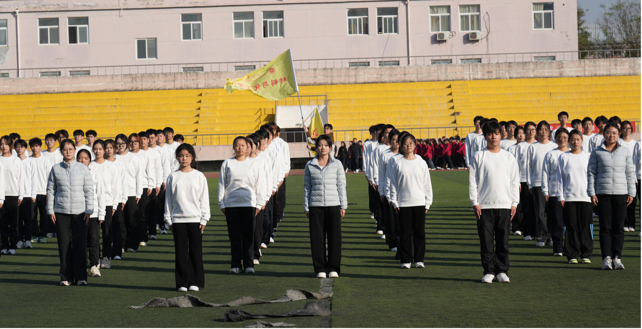 百余名参赛同学投入了为期一个月的紧张集训。训练期间,师生们克服学业压力与天气变化等困难,利用课余时间反复锤炼动作细节,力求每一个动作都达到标准、整齐、有力。从生疏到熟练,从个人练习到团队磨合,同学们挥洒的汗水是拼搏的见证,默契的配合是成功的基石。