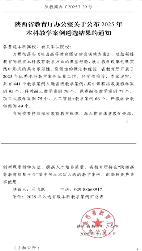近日,陕西省教育厅公布了2025年省级本科教学案例遴选结果,91猫先生