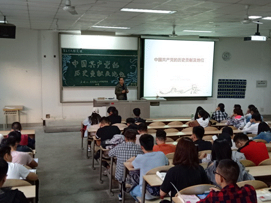 于2019年5月16日晚7时在教一-103举行第五十八期第六次党课,会议由学院党委组织员刘强珺主持,本次党课主题为中国共产党的历史贡献及地位,由马克思主义学院院长田亮教授进行授课。
