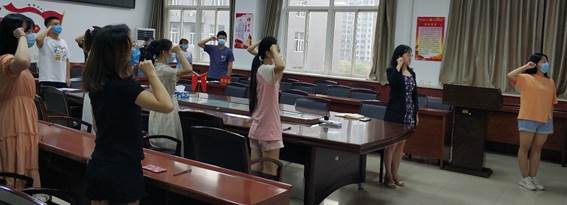 重温入党誓词,感怀入党初心。宣传委员党林林带领22名毕业生党员一起重温入党誓词,回顾自身政治生命历程,同时坚定自己在今后的人生旅途中不忘初心和使命、以实际行动为党旗增光添彩、将青春和汗水融入到中国梦的伟大征程中的决心。