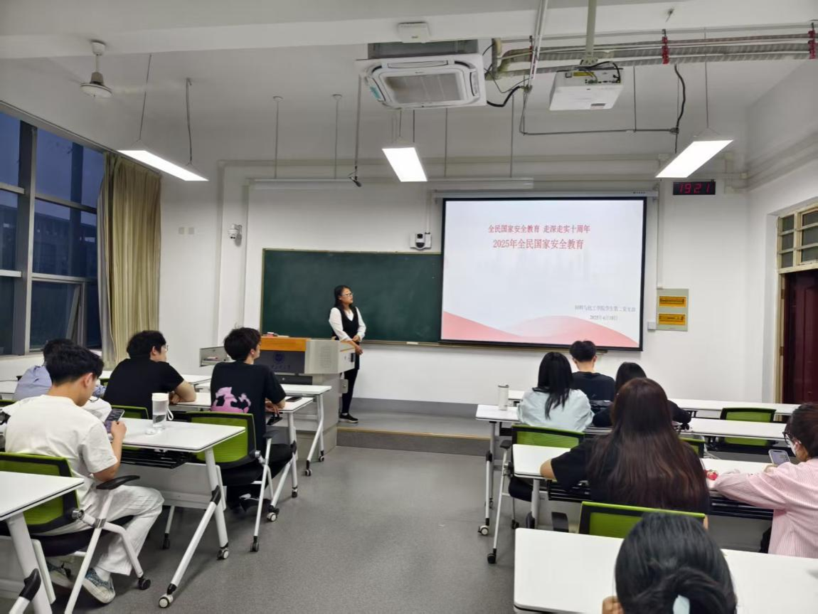 4月15日是全民国家安全教育日,为提升党员对国家安全重要性的认知,增强维护国家安全的责任感,2025年4月10日,材化学院学生第二党支部在教3-303开展了以“全民国家安全教育 走深走实十周年”主题党日活动。此次活动由支部书记张瑞红主持,支部全体成员参与。
