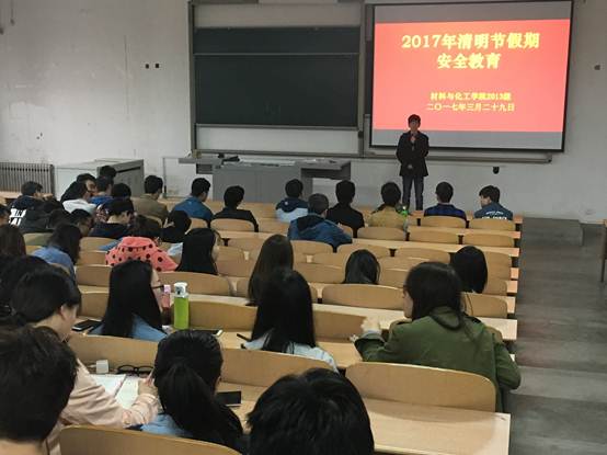 在教3-217召开2013级清明节假期安全教育大会,会议由辅导员陈远林主持,2013级全体学生参加了此次大会。