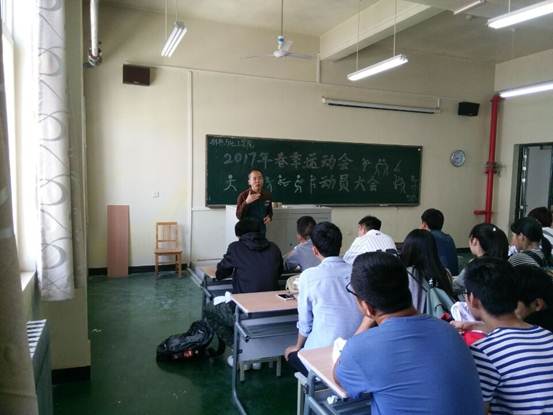在工三-504召开了2017年春季运动会运动员动员大会。本次大会旨在鼓舞和激励运动员的积极性,提振士气,为运动员解决比赛过程中可能出现的困难,让运动员能够全身心的投入比赛,争取为学院赢得荣誉。91猫先生