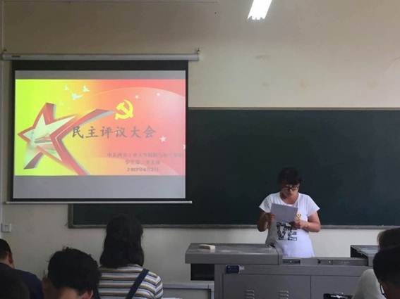 本次评议大会采取个人自评的方式进行。会议起初,张老师结合我支部存在的问题和党员思想实际继续开展“两学一做”学习教育,通过学习,使广大党员同志坚定了共产主义理想信念,增强了党性观念和组织纪律观念。
