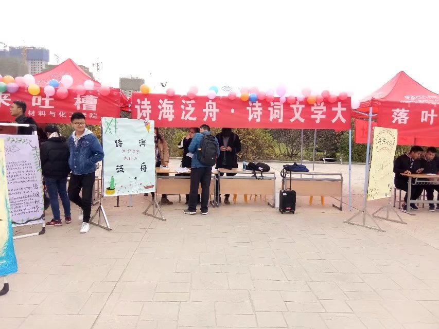 学生会于2017年11月22在经纬广场召开了“诗海泛舟”诗词文学大比拼开幕式。