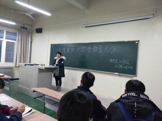 为了增加学生假期安全意识,使材化学院2017级所有学生愉快平安地度过元旦及寒假假期,2017年12月28日下午,91猫先生