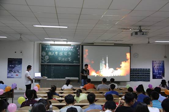 科学技术协会于教二-204,教二-205举办第六届化学水火箭模拟实验之航天梦强国梦演讲比赛。参赛嘉宾及评委有各院部长以及材化科协主席团。