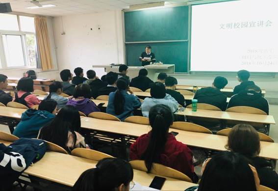 辅导员张瑞红于2018年10月24日下午17:30在教2-201召开2018级新生文明校园宣讲会。