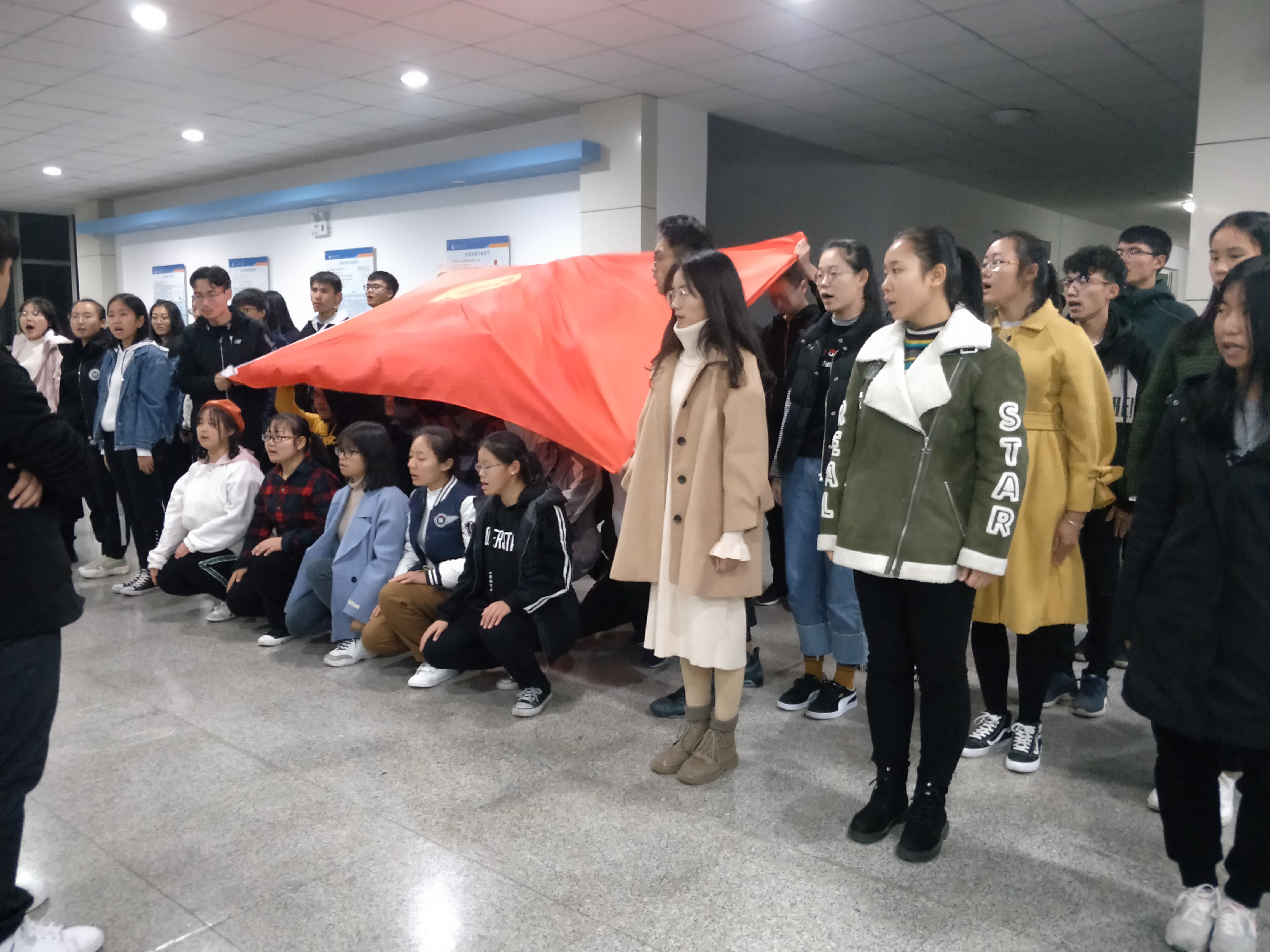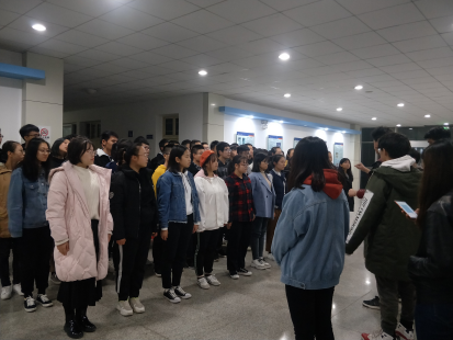 于2018年11月7日在教五一楼举行团歌排练。参加此次排练的为学院团委副书记甄子清、学生会文艺部部长佟盟、团委办公室各部长及参赛人员。