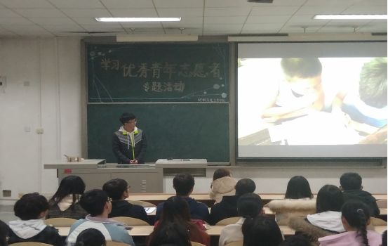 在学生会青协部长刘麒的主持下,会议开始。首先,一个视频导入让大家了解什么是志愿者,视频中每个人说的“我是志愿者”勾起了大家对志愿活动的向往。随后,刘麒为大家详细介绍:志愿者是什么、参加志愿活动后的好处、志愿者精神和志愿者服务理念。接着,用一个短片让大家了解一些优秀志愿者事迹。献血、捐助失血儿童、坚持三年去福利院和珠峰捡垃圾等志愿活动令大家十分触动。另外,刘麒还为大家介绍了他与付贵一行人去亭南村支教的经历和感受。最后,刘麒倡导大家学习志愿精神,积极参与到志愿活动中。至此,本次会议圆满结束。