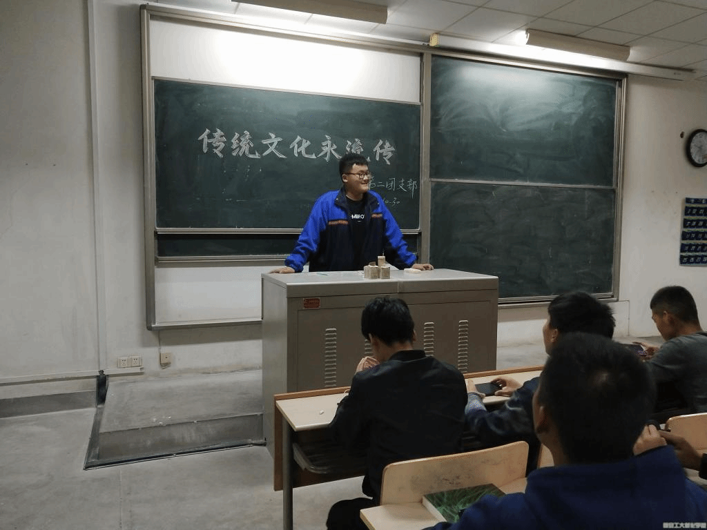 会议开始,由团支书宣布中国传统文化主题活动正式开始。首先,组织委员上台讲解关于传统文化的重要性及传承传统文化的必要性,使支部成员了解到传统文化的知识。其次,由支部成员讲解自己对关于传统文化的理解和看法,向其他团员表达自己内心对于传统文化的看法,大家相互讨论。最后,由支部各成员相互进行心得交流,使得支部成员对本次活动理解更加深入。至此,本次活动圆满结束。