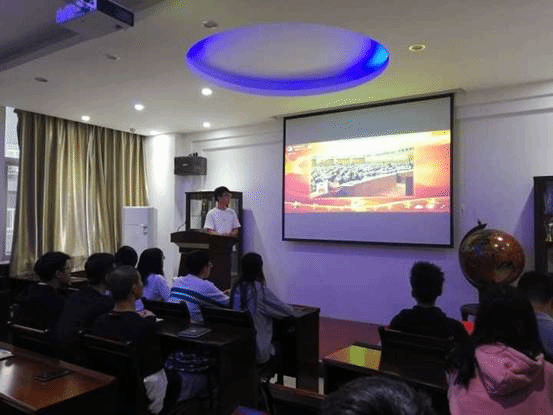 活动开始,整个会议在庄严肃穆的国歌声中拉开了帷幕。第一项,段老师就“五四精神”给予团学干部进行了讲述,简单介绍了五四运动100年的历史背景及事件,并倡导团学干部应积极塑造自身素质,以优秀青年团员的形象引导更多的共青团员,将爱国主义情怀广泛宣传到各个团支部,争做优秀青年。第二项,学生会副主席车枭带领所有团学干部集体认真学习观看“第23届‘中国青年五四奖章’颁奖仪式”,团学干部结合观影内容与自身进行感受交流,多数团学干部都从五四青年表彰中深深受到感动,并立志争做优秀共青团员。会议第三项,由团委副书记魏啸凯带领团学干部集体重温入团宣誓,在宣誓的整个过程中让更多的团学干部感受到五四精神的庄重。