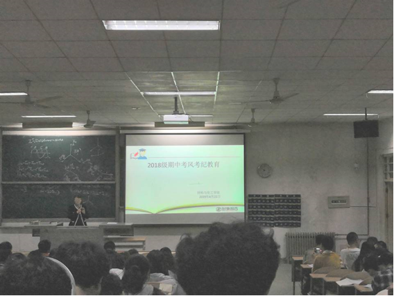 在2018级期中考试马上即将到来之际,首先,材化学院辅导员张瑞红老师希望同学们能靠自身实力考取好成绩,严肃考风考纪,弘扬优良学风,共同营造良好的考风,并对考试纪律作了强调。其次,要求学生一定要严格遵守校规校纪,严禁带手机进入考场;文明考试,诚信考试,从我做起,从现在做起,自觉遵守考场纪律,杜绝各种作弊行为,自觉抵制各种不良考风。最后,希望大家用真实的成绩证明自己的实力的要求,警示同学们诚信考试、不要作弊。