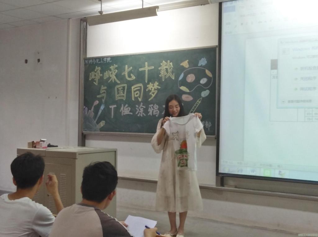 于2019年6月3日晚7时在教二-210举办“峥嵘七十载,与国同梦”T恤涂鸦大赛,学院学生会秘书长张思雨,体育部干部石东升,宣传部干部梁焱钊等人出席本次比赛。