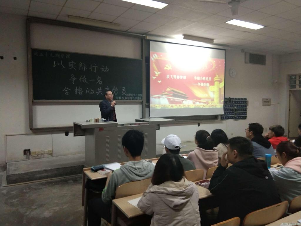 于2019年11月7日晚7时在教1-202顺利开展“放飞梦想,争做合格党员--争做先锋”主题党课教育。本次课程由学校统战部部长何春水老师进行授课。
